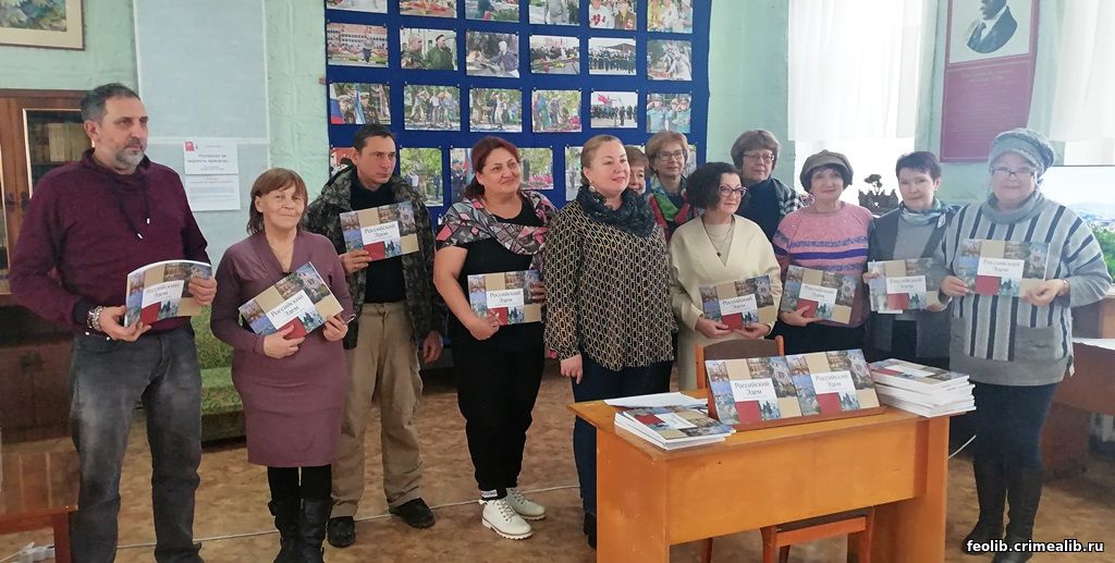 Презентация художественного альбома "Российский Эдем" в Городской библиотеке им. С. Пивоварова11 февраля в рамках Девятой общероссийской акции «Дарите книги с любовью – 2025» в Городской библиотеке им. С. Пивоварова прошла презентация художественного альбома "Российский Эдем". С приветственным словом к жителям и гостям города обратилась Вера Александровна Чеканова — профессиональный художник, заслуженный работник культуры Республики Крым, одна из организаторов проекта "Таврида сокровенная". Альбом был создан в рамках проекта Крымского республиканского отделения Союза художников России при поддержке Президентского фонда культурных инициатив. В издании отражено современное состояние объектов культурного наследия Республики Крым — российских усадеб с парковыми комплексами. В. Чеканова представила видеопрезентацию с фотографиями мест, где работали художники. Она отметила также, что проект направлен на привлечение частных инвесторов, которые смогут развивать культурное наследие Крыма. В альбом вошли картины крымских живописцев, написанные на пленэре "Дворцовые сады и парки Тавриды" в октябре 2024 года: Татьяны Дымановой‑Голынской, Михаила Жарова, Анастасии Калюжной, Елены Молчановой-Дудченко, Игоря Поздеева, феодосийца Сергея Поздеева, Веры Чекановой, Вероники Шевчук, Марии Шевчук-Черногородовой, Элеоноры Щегловой. Вера Александровна вручила эти красочные альбомы художникам-участникам проекта, художникам Феодосии, художественным студиям Феодосии, Центральной городской библиотеке им. А. Грина, Городской библиотеке им. С. Пивоварова. Экземпляры издания также были переданы в Галерею им. И. К. Айвазовского, в Музей древностей, в Музей А. С. Грина, в Детскую художественную школу им. И. К. Айвазовского и Музей В. И. Мухиной, в библиотеку школы №17. Раиса Лесникова, руководитель библиотеки им. С. Пивоварова | |
