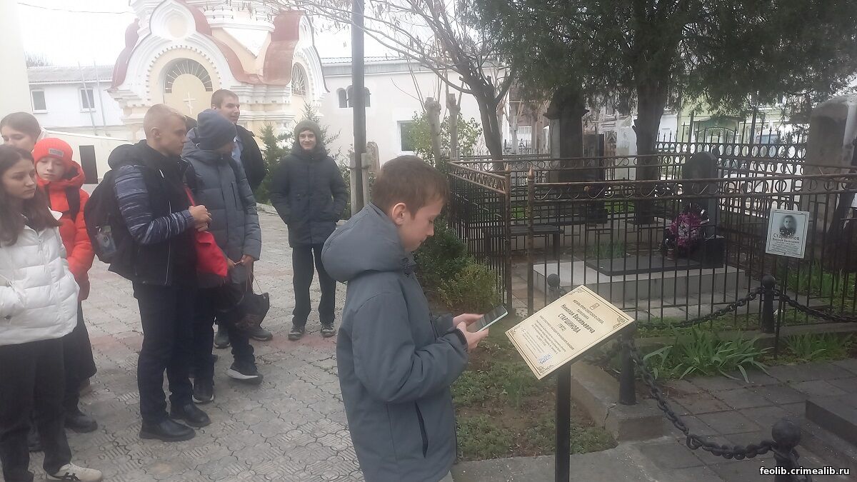 16 декабря руководитель Приморской поселковой библиотеки Анна Бородин совместно с руководителем Русской общины Крыма в г. Феодосии Татьяной Голуб провели для постоянных участников социального проекта «Народная тропа памяти» - учеников 8-А класса школы № 11 им А.В.Преснякова» выездную экскурсию по Феодосийскому некрополю. Читать далее...