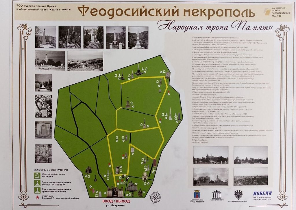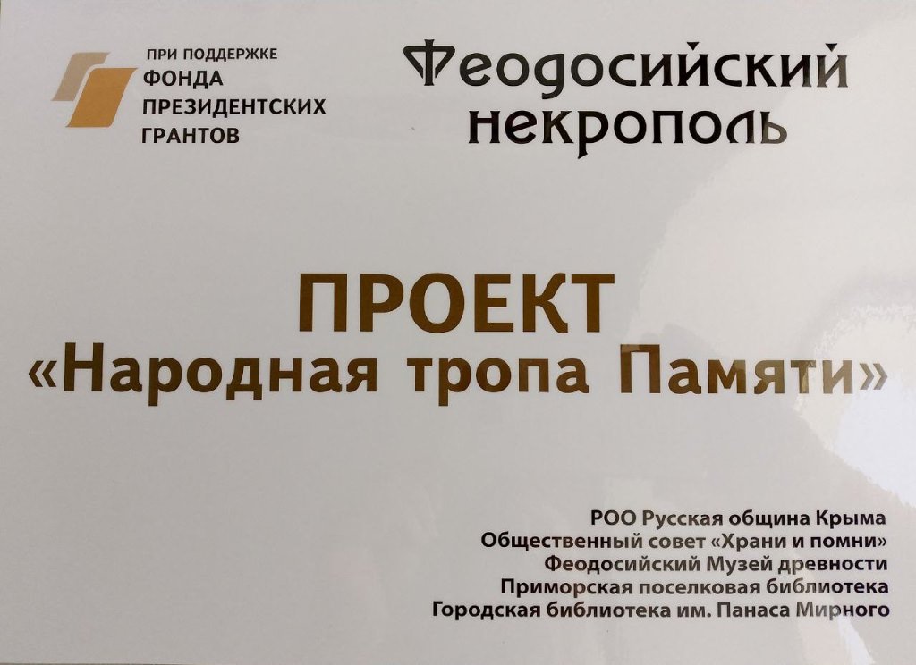 Библиотеки в Проекте «Народная тропа Памяти»17 августа в музее состоялась презентация проекта - победителя конкурса грантов Фонда президентских инициатив «Народная тропа памяти». Инициаторами проекта выступили Русская община города Феодосии, председатель Голуб Татьяна Евгеньевна и общественный совет «Храни и помни». Городская библиотека им. Панаса Мирного и Приморская поселковая библиотека стали партнерами данного проекта. Проект представляли руководители этих библиотек - С. Волчанова и А. Бородин. Проект «Народная тропа Памяти» позволит привлечь внимание на необходимость сохранения и изучения исторически значимого объекта города – Феодосийский некрополь. Здесь находятся 22 объекта культурного наследия (ОКН) регионального значения. Проект поможет легко и быстро сориентироваться, найти тропу и посетить все значимые объекты и побывать у Братских могил воинов. У входа в библиотеку появится стенд с указанием доступного маршрута по «Народной тропе памяти» для посещения всех объектов культурного наследия и главное – Братских могил. Вдоль маршрута установят указатели-путеводители, а у памятников ОКН – информационные таблички с наименованием и QR-кодами со ссылкой к полной информации об объекте. Библиотека им. Панаса Мирного, как партнер проекта, проведет для подрастающего поколения краеведческие часы, лекции и викторины. Сотрудники библиотеки познакомят ребят с понятием «объект культурного наследия», расскажут, какие объекты культурного наследия есть в нашем городе, и почему так важно бережно относиться к этим свидетелям минувших эпох. Для участников проекта будет организована экскурсия по «Народной тропе памяти», и молодежь сможет уже лично посетить объекты культурного наследия. Приморская поселковая библиотека в течение полугода будет проводить мероприятия, направленные на изучение истории Малой Родины, на привлечение внимания детей и подростков к сохранению исторической памяти. Сотрудники библиотеки планируют заниматься библиотечно-информационным краеведением; подготовкой плана мероприятий; подбором литературы для мероприятий; творческим сопровождением участников по подготовке эссе, текстов для публикаций в сборнике. Собранный краеведческий материал будет систематизирован и войдет во второй сборник из серии «Феодосия. История. События. Судьбы» с названием «Народная тропа памяти». Презентация пройдет в январе в Приморской поселковой библиотеке. Участники мероприятия будут доставлены для демонстрации нового маршрута «народная тропа памяти» на старое кладбище и посетят этнографический музей, познакомятся с экспонатами музея и информацией интерактивного стола в том числе и раздела «Народная тропа памяти», что позволит расширить возможности для изучения истории Феодосии и феодосийцев в разные годы. Проект «Народная тропа Памяти» - это не просто маршрут, соединяющий объекты. Это нить, связующая наше Настоящее с Прошлым, ведущая в светлое Будущее. С. Волчанова, руководитель Городской библиотекой им. Панаса Мирного А. Бородин, руководитель Приморской поселковой библиотеки | |