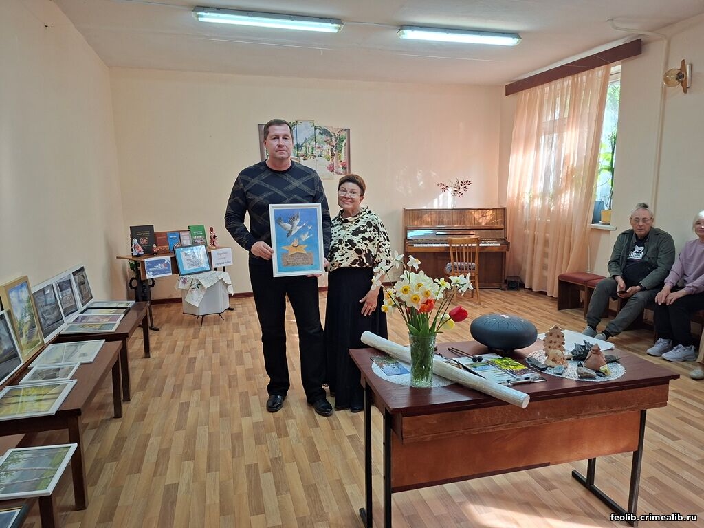 «Библионочь‑2026: Единство народов — сила России!»В 2026 году ежегодная акция «Библионочь» прошла в России уже в 15‑й раз. Тема этого года — «Единство народов — сила России!» — стала лейтмотивом мероприятия, которое состоялось в Городской библиотеке «Содружество» и собрало рекордное количество гостей: зал с трудом вместил всех желающих. Вечер открылся музыкальным выступлением, подарившим зрителям незабываемые впечатления. Перед гостями выступила Юлия Богатенкова — выпускница детской музыкальной школы № 1 (преподаватель — Заслуженный работник Республики Крым Е. Б. Бидерман), а в настоящее время - студентка 2‑го курса Симферопольского музыкального училища им. П. И. Чайковского. Юная пианистка виртуозно исполнила произведения Ференца Листа, а публика наградила её бурными овациями и пожелала дальнейших творческих успехов. Следующим ярким этапом вечера стало открытие выставки И. В. Журавлёвой «Моя Россия: от Крыма до Камчатки». Автор подготовила захватывающий рассказ о Камчатке: она поделилась личными впечатлениями и показала привезённые артефакты. Предметы ходили по залу, вызывая неподдельный интерес и удивление у гостей. Дополнила атмосферу интерактивная часть: игра на глюкофоне, варгане и посохе дождя вызвала бурю положительных эмоций и подарила участникам особые мгновения радости. Мероприятие посетили почётные гости. Среди них — Артем Мельниченко советник Главы Республики Крым и руководитель Крымского регионального благотворительного фонда«Новый Крым". В знак признательности ему была вручена картина в дар для фонда. Литературная часть вечера тоже получилась душевной и вдохновляющей. Поэтессы Г. С. Кондратова и И. И. Игнатова прочитали стихи собственного сочинения, посвящённые любимому Крыму и России. Ирина Альянаки подарила свою новую книгу «Кошка Мурочка и война». Супруг Ирины, Александр Альянаки, также порадовал гостей чтением собственных стихов. Выступление барда Александра Седова сделало этот вечер особенно атмосферным. В зале царило удивительное ощущение единства: слушатели не просто внимали песням — они проживали их вместе с исполнителем. Весь вечер в зале звучали тёплые слова, царила атмосфера единства, творчества и патриотизма. Завершилось мероприятие символично — под звуки посоха дождя, что оставило в сердцах гостей особое послевкусие и желание вернуться в библиотеку снова. Мы искренне благодарим всех гостей, участников и организаторов за вклад в успех «Библионочи‑2026». Ваше присутствие и поддержка делают такие события по ‑настоящему значимыми. Ждём вас в нашей библиотеке — вместе мы создаём пространство культуры, единства и вдохновения! Л. Н. Гошокова, руководитель библиотеки. | |