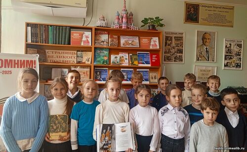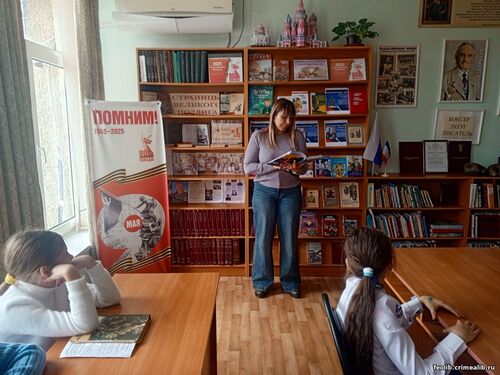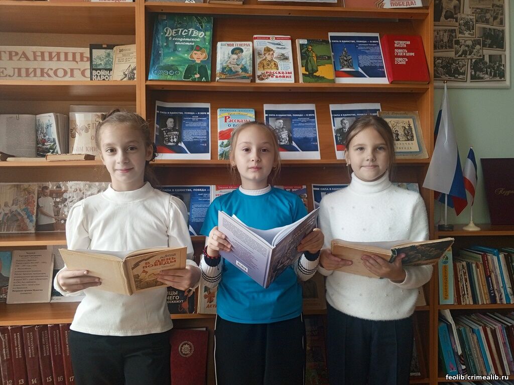 Читательский марафон «Получи радость чтения» в селе Береговое3 декабря читатели Береговой сельской библиотеки им. Г. Свиридова приняли традиционное участие в ежегодном Республиканском читательском марафоне «Получи радость чтения».Организатором акции является ГБУК РК «Крымская республиканская универсальная научная библиотека им. И. Я. Франко» при поддержке Министерства культуры Республики Крым. К марафону, темой которого стал Год защитника Отечества и 80-летия Великой Победы, в библиотеке была подготовлена книжная выставка «Страницы великого подвига». Марафон направлен на продвижение чтения среди детей и молодежи, и потому основными участниками его стали учащиеся школы №8 (директор В. Н. Гук). Открыли мероприятие почетные гости: Шувалова Ольга Сергеевна, заместитель начальника Приморского территориального отдела Управления территорий Администрации города Феодосии, Кравченко Андрей Иванович, участник СВО. Читатели библиотеки всех возрастов читали произведения русских советских писателей и поэтов о войне: С. Алексеев «Сто рассказов о войне», стихи Э. Асадова, А. Ахматовой, К. Симонова, произведения из сборников «Страницы подвига», «Детство в солдатской пилотке», «Юность длиною в войну» и другие. Особую активность проявили на "марафоне" ученики 3 класса школы № 8 (классный руководитель Н. А.Смыкун) . Галина Свичкарь, руководитель Береговой сельской библиотеки им. Г. Свиридова | |