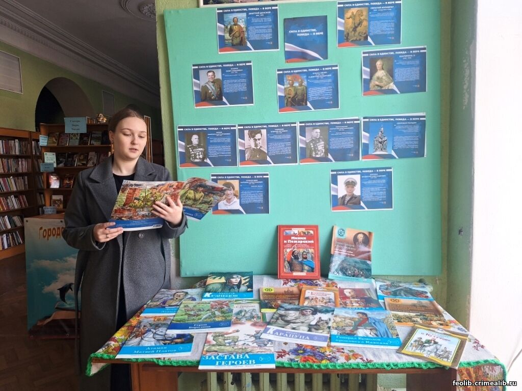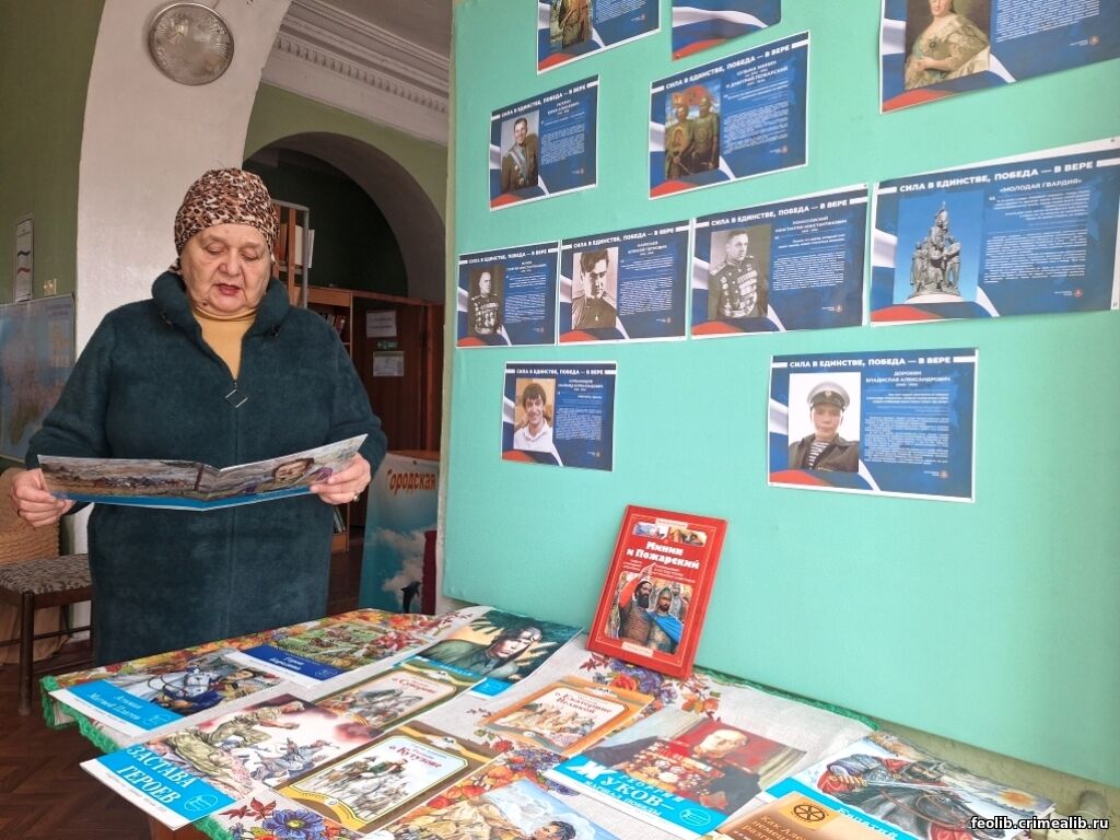 Громкие чтения "Защитники земли русской"Библиотека им. Панаса Мирного стала частью масштабного события – ежегодного Республиканского читательского марафона «Получи радость чтения», организованного Крымской республиканской универсальной научной библиотекой имени И.Я.Франко при поддержке Министерства культуры Республики Крым.В рамках марафона 3 декабря в библиотеке прошли громкие чтения «Защитники земли русской». Популярностью пользовались книги из одноименной серии. Читатели и гости библиотеки прочли вслух выбранные произведения. Звучали рассказы о людях, которые в разные времена, много столетий назад и совсем недавно, защищали нашу Родину от врагов. Читатели узнали о жизни и подвигах Александра Невского, Дениса Давыдова, Николая Кузнецова, Георгия Жукова и других защитников родной земли. Тематическая подборка книг помогла ближе познакомиться с историей нашей страны, с характерами её замечательных людей, мужественных и храбрых воинов. Несомненно, любовь к чтению и интерес к истории – залог сохранения памяти о прошлом и строительства мирного будущего. Н. Н. Пальчун, ведущий библиотекарь | |