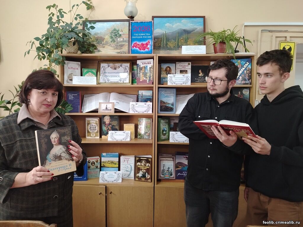 Книжная выставка «За высочайшим “ПОДПИСОМ”»На абонементе Центральной городской библиотеки им. А. Грина экспонируется книжная выставка «За высочайшим “ПОДПИСОМ”», посвященная памятной дате в истории России — Дню принятия Крыма, Тамани и Кубани в состав Российской империи. Выставка предлагает обратиться к событиям прошлого, которые связывают Крым с его исторической Родиной. Представленные книжно-иллюстративные материалы наглядно показывают, что для русского народа Крым - это не просто территория, это колыбель его цивилизации и культуры, раскрывают важность исторического события. В разделах «Накануне великих свершений», «Божiею Мiлостiю» экспонируются издания, которые дают широкую панораму напряженной борьбы русского двора, закончившуюся окончательным решением «Крымского вопроса», высвечивают образы прозорливых политиков, проводивших блестящую операцию по укреплению русских границ. Российское государство добилось быстрых и очевидных результатов в освоении причерноморских пространств, сплотив силы и способности людей разного происхождения. Новинки краеведческой литературы, объединенные рубриками «Эпоха, примечания достойная», «Восклицательный знак в истории присоединения» посвящены путешествию Екатерины II в Новороссию и Крым, знакомству императрицы с трудолюбивым народом, объединенным под ее скипетром, с колоссальными успехами превращения «дикого поля» в «рай земной». Прекрасные издания, размещенные в разделе «Под державою Российскою», отражают период становления российской Тавриды. Заслуженный интерес посетителей вызывают книги из библиотечного фонда о представителях династии Романовых, русской аристократии, которые верой и правдой служили Отечеству, неустанно заботились об изучении, благоустройстве «полуденного края», способствовали рождению «русской Ривьеры», строительству городов, курортов, развитию экономики, крымского сельского хозяйства, промышленности и торговли, процветанию крупнейшей военно-морской базы русского флота. «Крымская весна» восстановила историческую справедливость принадлежности Тавриды. Слава Крыма – в делах тех, кто, защитил и сегодня украшает Республику своим трудом. О них, современных жителях, строителях многонационального полуострова, достопримечательностях, инфраструктуре Республики Крым и города Севастополя, о перспективах развития региона повествуют издания, представленные в разделе «Россия и Крым – общая судьба». Живописные полотна самобытных художников Народного коллектива Творческого союза художников «Кафа» городского Дома культуры прекрасно дополняют книжную экспозицию. Яркие, искренние, они наполнены теплом и любовью к всегда прекрасному Крыму. Просмотр литературы, посвященный 243 годовщине подписания Манифеста «О принятии полуострова Крымского, острова Тамана и всей Кубанской стороны под Российскую Державу» послужит полезному делу просвещения Историей. Е. Бильданова, главный библиотекарь ЦГБ им. А. Грина | |