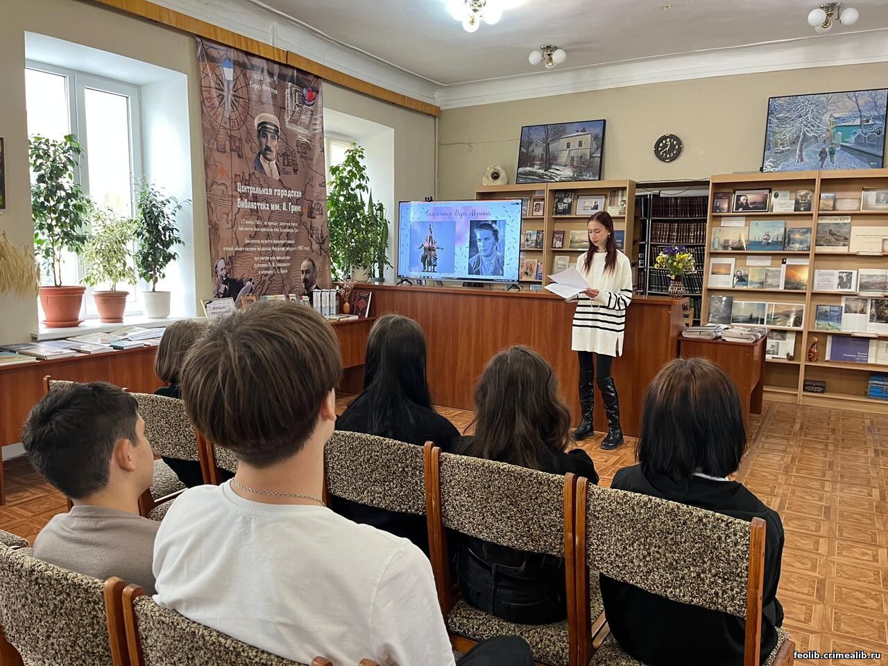 Литературно-краеведческий девичник «Женщины Крыма – достояние Мира»В рамках краеведческой программы «Крым. Знакомый и неизведанный» в Центральной городской библиотеке им. А. Грина библиотекарь Ковальчук Екатерина подготовила и провела для учеников Феодосийской специальной школы-интерната литературно-краеведческий девичник «Женщины Крыма – достояние Мира».Екатерина Александровна рассказала ребятам о самых выдающихся женщинах в истории Крымского полуострова, начиная с античных времен. Среди них были и правительницы, и скульпторы, партизаны и артиллеристы, поэтессы и актрисы. Екатерина Великая внесла огромный вклад в экономическое развитие полуострова, сестра милосердия Даша Севастопольская спасла множество жизней во время Крымской войны, Людмила Павличенко и Зоя Рухадзе прославили себя на весь мир благодаря своим подвигам во время Великой Отечественной войны, а Марина Цветаева и Вера Мухина отражали Крым в своем творчестве. Во время выступления библиотекарь подчеркнула, что каждая из этих женщин когда-то была маленькой девочкой со своими мечтами, целями и амбициями, и достигли они своих высот благодаря упорному труду, дисциплине и преданности себе и своему делу. Е. Ковальчук, библиотекарь | |