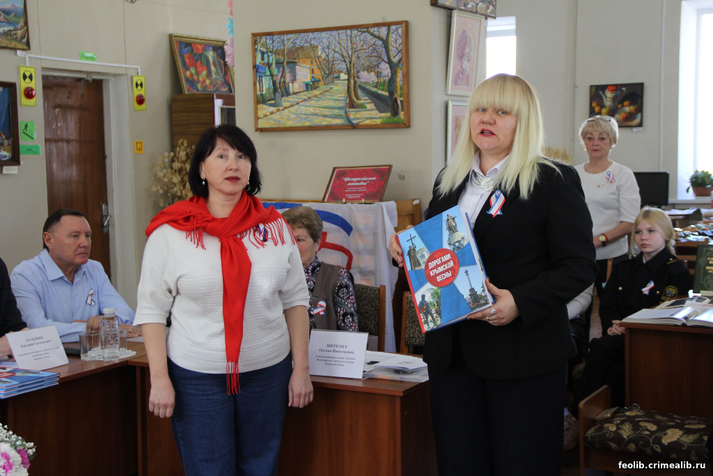 Круглый стол «Крымская весна - победа народного единства»11 марта в Центральной городской библиотеке им. А. Грина прошел круглый стол «Крымская весна - победа народного единства», приуроченный ко Дню воссоединения Крыма с Россией.Организаторами мероприятия выступили Общественный совет муниципального образования муниципальный округ Феодосия Республики Крым, Администрация города Феодосии Республики Крым, Общественная палата Республики Крым, ФГАОУ ВО «Крымский федеральный университет имени В. И. Вернадского». Гостями "круглого стола" стали студенты учебных учреждений, Молодежный Совет города, руководители организаций Феодосии. Открыла мероприятие Ольга Анатольевна Гук – Председатель Общественного совета муниципального образования муниципальный округ Феодосия Республики Крым, доцент, кандидат философских наук, доцент кафедры рекламы, связей с общественностью и издательского дела, ИММиД ФГАОУ ВО «Крымский федеральный университет им. В. И. Вернадского», представив почетных гостей мероприятия. Почетные гости "круглого стола" - Резанов В. Н. - член Общественной палаты Российской Федерации от Республики Крым, заместитель председателя Общественной Палаты Республики Крым; Плакида А. А. – член Общественной платы Республики Крым; Заикин И. В. - заместитель председателя Феодосийского городского совета; Пузанов А. А. – заместитель председателя Общественного совета Феодосии; Орочко Н. В. - член «Союз советских офицеров и ветеранов боевых действий Феодосии и Восточного Крыма»; Шеремет О. Н. - главный редактор газеты "Победа" Феодосийского городского совета; Головин Е. Е. - депутат Феодосийского городского совета третьего созыва; Туров А. В. - Советник Главы Республики Крым; Голуб Т. Е. - Председатель Феодосийского отделения Русской общины Крыма; Миних Ю. В. – атаман Хуторского Казачьего Общества «Молодежный союз казаков»; Дьяков В. В. – член Общественного совета Феодосии. С приветственным словом выступили И. В. Заикин и В. Н. Резанов. Участники круглого стола прослушали доклады: «Формирование гражданского общества Крыма в новейшей истории России», «Крымская весна на банкнотах России», «События Крымской весны. Восточный Крым: как это было», «Влияние советской и мировой политики в XX-XXI веке на историю и развитие Крыма, России», «Патриотические инициативы российских общественников в Крымской Весне», «Отражение единства народов в событиях Крымской весны», «Участие Русской общины в Крымской весне» и другие. Организаторы мероприятия передали от авторов О. В. Маркелова и А. П. Мащенко Центральной городской библиотеке имени А. Грина книгу «Дорогами Крымской весны» с их дарственной надписью. Это издание вышло в 2025 году при поддержке Главы Республики Крым С. В. Аксенова и Председателя Государственного Совета Республики крым В. А. Константинова. Книгу торжественно вручила директору Централизованной библиотечной системы О. В. Филатовой председатель Общественного совета Феодосии О. А. Гук. Сотрудники Центральной библиотеки им. А. Грина представили гостям книжную выставку "Крым с Россией на все времена". Участники "круглого стола" увидели уникальные фондовые издания, посвященные истории Крымской весны 2014 года - о ее предпосылках, движущих силах и ключевых событиях, о ее результатах и значении для нашей страны и всего мира, о людях, благодаря кот