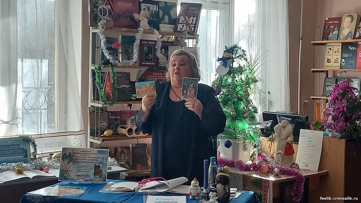 Музыкально-поэтический вечер «В слове «Зима» волшебства и чудес предвкушение»В Приморской поселковой библиотеке с успехом прошел творческий музыкально-поэтический вечер заместителя председателя Союза русских писателей Восточного Крыма, поэтессы Ирины Игнатовой «В слове «Зима» волшебства и чудес предвкушение».Примечательно, что встреча состоялась в День Святого Николая и была посвящена зиме, зимним забавам, зимней природе, зимнему настроению. Ирина Ивановна читала свои стихи с волнением и воодушевлением. Рассказывала каждому присутствующему о том, что послужило поводом для написания тех или иных произведений, показала новогодние открытки из своего детства, которые хранит уже много лет, и которые вдохновляют ее на создание новых стихов. Поэтессу в народе называют «Феодосийская Агния Барто», так как она много произведений пишет для детей и часто выступает перед ребятами разного возраста на различных площадках нашего города. На большом экране гости смотрели красивые зимние пейзажи, мысленно возвращались в детство, вспоминали свою юность, студенчество, своё взросление. Гостью пришли поздравить с творческим новогодним вечером друзья и коллеги. Так, с музыкальным номером на стихи Ирины Игнатовой выступил секретарь Союза русских писателей Восточного Крыма, бард Алексей Завитаев. Несколько зимних песен подарила гостям сотрудница Музея Марины и Анастасии Цветаевых Лариса Кириенко. Такой встречей сотрудники Приморской поселковой библиотеки поздравили своих читателей с наступающими новогодними праздниками, и сами получили массу удовольствия, позитива и задела на успешную реализацию многих творческих проектов в наступающем году. Анна Бородин, руководитель библиотеки | |