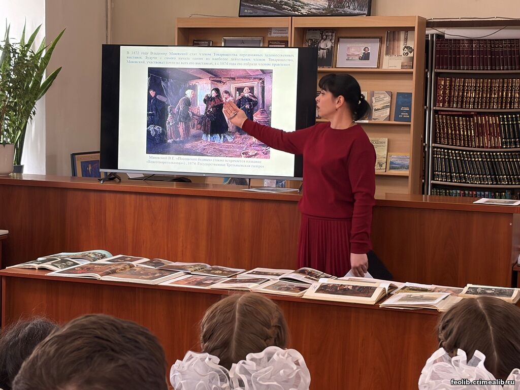 Познавательный час «Владимир Маковский - великий творец бытового жанра»В рамках культурно-просветительской программы "Художники и их истории: за кулисами великих произведений" в Центральной городской библиотеке им. А. Грина прошел познавательный час «Владимир Маковский - великий творец бытового жанра». Мероприятие приурочено к 180-летию со дня рождения русского художника, живописца-передвижника, графика, педагога, мастера жанровой живописи Владимира Егоровича Маковского. Приглашенными гостями познавательного часа стал кадетский класс школы № 3 им. Ю. А. Гарнаева. Заведующая отделом обслуживания ЦГБ им. А. Грина Наталья Архипова рассказала о жизни и творчестве Мастера бытового жанра, тонкого психолога и настоящего летописца своей эпохи Владимира Маковского, который являлся одним из руководителей Товарищества передвижных выставок, преподавателем в натурном классе Московского училища живописи, ваяния и зодчества, вел живописную мастерскую в Императорской Академии художеств. Благодаря презентации зрители познакомились с шедеврами живописца: «Квасник», «Литературное чтение», «Крестьянские мальчики в ночном стерегут лошадей», «Игра в бабки», «В приемной у доктора», «Любители соловьиного пения», «Посещение бедных», «Ожидание. У острога», «Ночлежный дом», «Крестьянские дети», «Девушки, освещенные солнцем», «Свидание», «На бульваре», «Деспот семьи. В мастерской художника», «Ходынка», «После Ходынки. Ваганьковское кладбище» и другие. Библиотекарь подчеркнула, что благодаря творчеству художника, наша страна имеет наглядную энциклопедию русской жизни второй половины девятнадцатого века. Ребята активно делились своими впечатлениями, проводили параллели с литературой и историей, обсуждали, насколько работы Маковского остаются актуальными и сегодня. Мероприятие прошло в живой, заинтересованной атмосфере, доказав, что настоящее искусство не имеет возрастных границ и способно вызывать глубокий отклик у современной молодежи. Наталья Архипова, заведующая отделом обслуживания | |