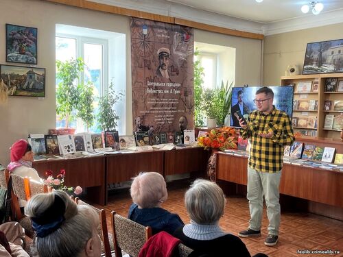 Праздник «60 лет дорогами мечты: мир Грина продолжает жить в книгах»17 ноября 1965 г. по просьбе жителей города библиотеке было присвоено имя Александра Грина в ознаменование 85-летия со дня рождения писателя, жившего и создавшего в Феодосии свои лучшие романы. В этом году исполняется 60 лет, как главная библиотека города живет и работает под именем последнего романтика ХХ века. 16 ноября в библиотеке состоялось праздничное мероприятие «60 лет дорогами мечты: мир Грина продолжает жить в книгах».В уютном читальном зале библиотеки в этот день собрались коллеги, читатели, друзья, гости – те, кто не мыслит своей жизни без чтения, чтобы вспомнить, как все начиналось, поделиться тем, что было хорошего за эти годы, помечтать о будущем. Праздник начался с экскурса в прошлое «Служение книги и читателям», который провела ведущая - библиотекарь Кристина Ильина. Она рассказала о многочисленных событиях, произошедших за время существования библиотеки. За годы своей истории главная библиотека Феодосии стала настоящим информационным, образовательным, культурно–просветительным, досуговым центром. В адрес библиотеки звучали теплые слова поздравлений и пожеланий от Председателя клуба коллекционеров, Члена общественного совета В. В. Дьякова. Невероятно приятным и значимым подарком стали книги Издательского Дома «Коктебель», которые презентовал библиотеке Д. А. Лосев - руководитель и главный редактор издательства. «Жизнь в оккупированной Ялте» Н. Дежкина, «По Крыму. Отражения. Год 1889-й» С. Филиппова, «Анапа: перекрёстки легендарных судеб» А. Шустова, «Джесси и Моргиана. Автобиографическая повесть. Рассказы» А. Грина – эти книги торжественно вручил библиотеке почётный даритель Д. А. Лосев. По-настоящему праздничным юбилей стал благодаря ярким выступлениям юных музыкантов, учащихся детских музыкальных школ города. Ярослав Вайе Рейтор (преподаватель Цмоць Н.Г.), Алексина Пипериди (преподаватель Булавченко А.В.), Ниаль Халилова и Мария Гриценко (преподаватель Халилов А.А.) своими виртуозными номерами погрузили всех в мир тонких звуков и гармоничных мелодий. Поздравления прозвучали и от активных участников литературного объединения «Киммерия». Авторские стихотворения и прозу представили члены ЛИТО «Киммерия» Наталья Беднякова, Инна Сидоренко, Ирина Игнатова, Галина Кондратова, Руфина Максимова, феодосийский поэт Иван Иванов. а бард Алексей Завитаев исполнил на гитаре песни о любимом городе. К празднику библиотекари подготовили просмотр книг из фонда библиотеки с дарственными надписями от феодосийских авторов. На книжной выставке «Человек, подаривший мечту» посетители смогли познакомиться с изданиями разных лет о любимом писателе. К. Ильина, главный библиотекарь сектора по обслуживанию молодёжи Фото: Н. Архипова, заведующая отделом обслуживания ЦГБ им. А. Грина и В. Дьяков, член Общественного совета Феодосии | |