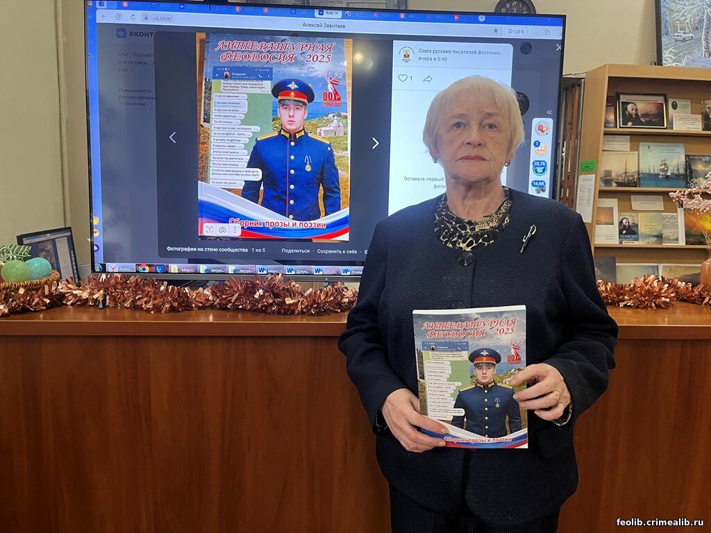 Презентация сборника "Литературная Феодосия – 2025"В Центральной городской библиотеке им. А. С. Грина состоялась презентация сборника "Литературная Феодосия - 2025".Этот выпуск альманаха вышел в Юбилейный год – год двадцатилетия Союза русских писателей Восточного Крыма (редактор Михаил Облётов). Открыл мероприятие председатель Союза Владимир Смирнов. Он рассказал собравшимся в зале об истории создания Союза, о предыдущих выпусках сборника, о том, что в этом году, названном Годом Защитника Отечества, годом 80-летия Великой Победы, многие работы в альманахе были посвящены именно этим событиям. В сборник вошли творческие работы поэтов, прозаиков и публицистов, объединившие единомышленников Крыма, Краснодарского края, Тюмени, Москвы и Подмосковья, Санкт- Петербурга. Светлана Литвинова, мама Егора Шаповалова, чей портрет украшает обложку альманаха, рассказала о своём сыне, молодом лейтенанте, погибшем год назад под Курском, и о друзьях-лейтенантах сына Евгении и Максимилиане, отдавшим свои молодые жизни за Победу. Светлана Станиславовна читала стихи, посвящённые Егору и его боевым друзьям-сослуживцам, ушедшим в Вечность. Кадеты "Казачьей школы джур имени Егора Шаповалова" исполнили песню "Ты Герой!" на стихи Егора. Авторы, чьи работы представлены в сборнике, познакомили присутствующих на презентации со строками своих произведений. Всем авторам были вручены сборники и празднично оформленные благодарности с пожеланиями здоровья, мирного неба, постоянного вдохновения, радости, добра и новых книг в наступающем Новом году. Двадцать сборников "Литературная Феодосия – 2025" по давней традиции Союз подарил библиотекам Феодосии. Н. Беднякова, заведующая методико-библиографическим отделом | |