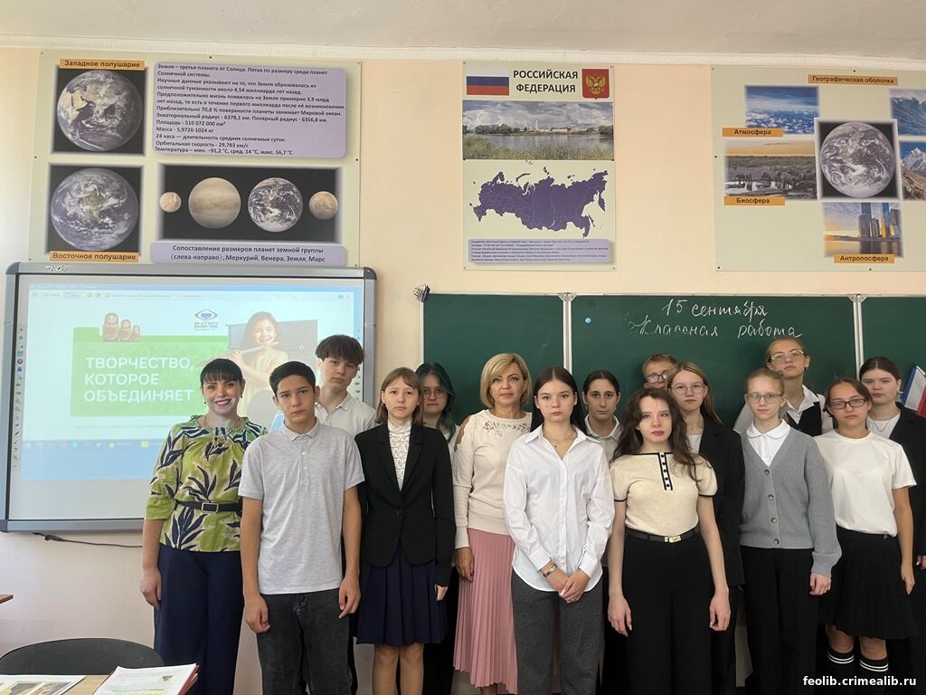 «Разговоры о важном»: час общения «Творчество, которое объединяет» в школе-интернатеДля старшеклассников Феодосийской санаторной школы-интерната в рамках внеурочных занятий «Разговоры о важном» заведующая отделом обслуживания Центральной городской библиотеки им. А. Грина Наталья Архипова провела час общения «Творчество, которое объединяет». Наталья Александровна рассказала о видах творчества, которые связаны с созданием чего-то нового в художественной, музыкальной, литературной и научной сферах; о роли искусства в личностном становлении и духовном обогащении. Более подробно остановились на культурном наследии России в живописи, музыке, литературе. Дополнила рассказ красочная презентация с фотографиями художников и их знаменитых картин - К. Брюллова, А. Иванова, И. Шишкина, И. Айвазовского, И. Левитана, В. Сурикова, М. Врубеля, В. Васнецова, И. Репина, К. Малевича. Рассмотрели творческое наследие композиторов М. Глинки, М. Мусоргского, П. Чайковского, С. Рахманинова, С. Прокофьева. Ребята активно обсуждали возможность развития творческих способностей и талантов в рамках государственных проектов, центров дополнительного образования. Российская культура давно знаменита во всем мире, задача нашего общества — сохранять эти культурные ценности и создавать новые творческие решения, которые будут работать на развитие нашей страны. Наталья Архипова, заведующая отделом обслуживания ЦГБ им. А. Грина | |
