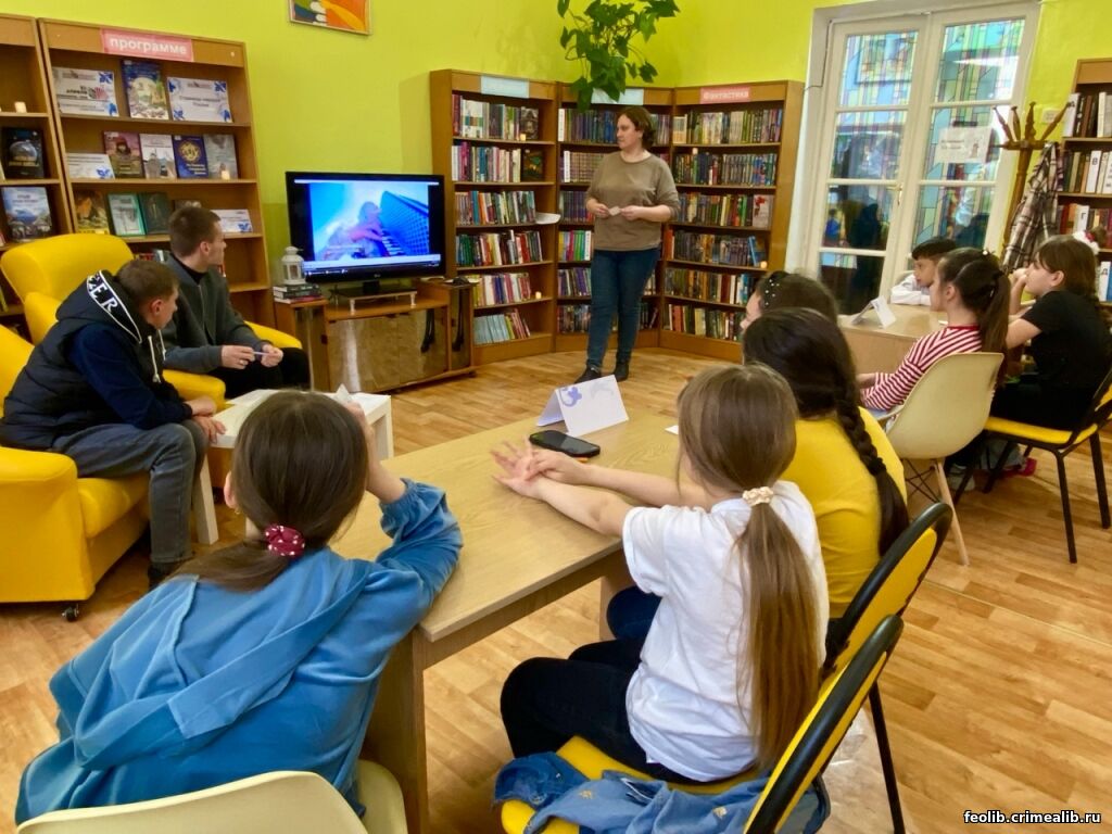 Большой интерес вызвал премьерный показ видеоролика «Народы Крыма» от юнкоров пресс-центра «Патриот». После просмотра зрители смогли лично познакомиться с героями сюжета — представителями национальностей Крыма и съёмочной группой. На протяжении всего вечера в фойе работала Творческая мастерская от Молодёжного центра «Идея». Вместе ребята создали большую и красивую картину, в которую каждый внёс свой неповторимый вклад. Всего в Библиосумерках приняли участие 60 человек! Три площадки — три формата отдыха С 16:40 заработали сразу три площадки для детей разных возрастов: