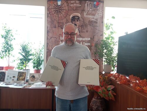 В дар Центральной городской библиотеке им. А. Грина от историка Александра ГригороваВоенный историк, член Союза писателей России, руководитель рабочей группы Книги памяти Первой мировой войны Александр Игоревич Григоров передал в фонд Центральной городской библиотеки им. А. Грина Справочник «Крымчане – Георгиевские кавалеры Великой войны 1914-1918 годов».Справочник является третьим в России территориальным изданием по Георгиевским кавалерам: первые два вышли в Екатеринбурге и Рязани. Он выступает собранием систематизированной информации о крымчанах, удостоенных в годы Великой войны 1914-1918 гг. Георгиевских награждений: Ордена святого Великомученика Победоносца Георгия любых степеней, Георгиевского Оружия, Знаков Отличия Военного Ордена (Георгиевских Крестов) и Георгиевских Медалей «За Храбрость» любых степеней, а также Наперсных крестов на Георгиевской ленте. Издание содержит в себе данные из фондов архивов (РГВИА, РГА ВМФ, ГА РФ, ГА РК) на более чем 8 500 награждённых крымчан и более чем 31 000 награждённых чинов частей и подразделений, ушедших на войну из Крыма или действовавших с его территории. В «Крымской Книге Памяти Великой войны 1914-1918 годов» содержатся сведения о потерях и награждениях нижних чинов и офицеров, послужные списки офицеров и другие упоминания о военных чинах и гражданских лицах: