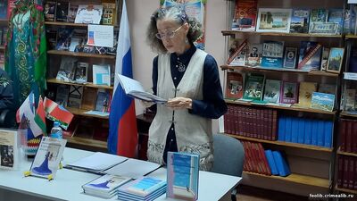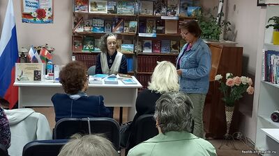Вечер-элегия «Королева мыслей»В преддверии Дня пожилого человека 25 сентября в Приморской поселковой библиотеке состоялся вечер-элегия "Королева мыслей" белорусской поэтессы Анастасии Кузьмичевой.Автор является членом Союза писателей Беларуси, членом Евразийской творческой гильдии, руководителем театра «Литосфера» в Минске. На встрече она представила свои новые книги "Крик муравья" и "Королева мыслей". На некоторые тексты стихов написаны мелодии, которые и прозвучали в стенах библиотеки. Свою землячку пришли поприветствовать белорусы Феодосии, члены общества "Спадчына". Так, Галина Беляева прочла стихи самого автора, понравившиеся больше всего и не вошедшие в праздничную программу. Встреча получилась интересной, насыщенной, международной. Автора благодарим за возможность окунуться в мир поэзии и пофилософствовать на разные темы. Анна Бородин, руководитель библиотеки | |