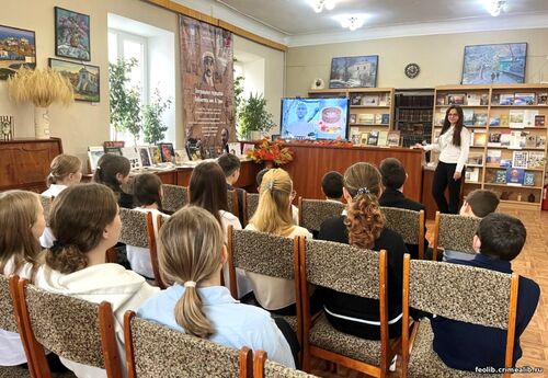 Вечер-награждение «Лучшие видеоработы» участников проекта «Гений места»18 ноября в Центральной городской библиотеке им. Грина в рамках реализации проекта «Гений места» состоялся вечер-награждение «Лучшие видеоработы».На протяжении года активная молодёжь города и участники медиапространства «ВСЛУХ!» работали над созданием видеороликов, фильмов, видеопрезентаций о самых известных личностях, знаменитых уроженцах, гениях Феодосии и Крыма. На вечере присутствовали старшеклассники из разных школ города. Для гостей мероприятия и членов медиапространства был организован показ видеоработ. Аудитория отметила видеофильмы «Великий богатырь земли русской Иван Поддубный» (автор Д. Троицкий), «В честь Петра Клементьева» (автор М. Панасюк), «Крымская мистерия Константина Богаевского» (автор В. Гринчик), «Из Крыма к звёздам» (автор Д. Абдуллаев). Особенно важными и ценными были признаны видеозаписи интервью «Сегодня говорим о поэзии» с феодосийскими поэтами, «Феодосия глазами женщины» с художниками города, «Космические страницы Феодосии» с заслуженным лётчиком Крыма, которые готовили и проводили участники медиасообщества М. Гриценко, А. Коваленко и А. Постика. Авторам лучших работ руководители проекта вручили грамоты. Вечер-награждение библиотекари завершили экскурсией по выставке «Вселенная Александра Грина». К. Ильина, главный библиотекарь сектора по обслуживанию молодёжи, | |