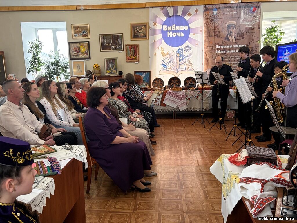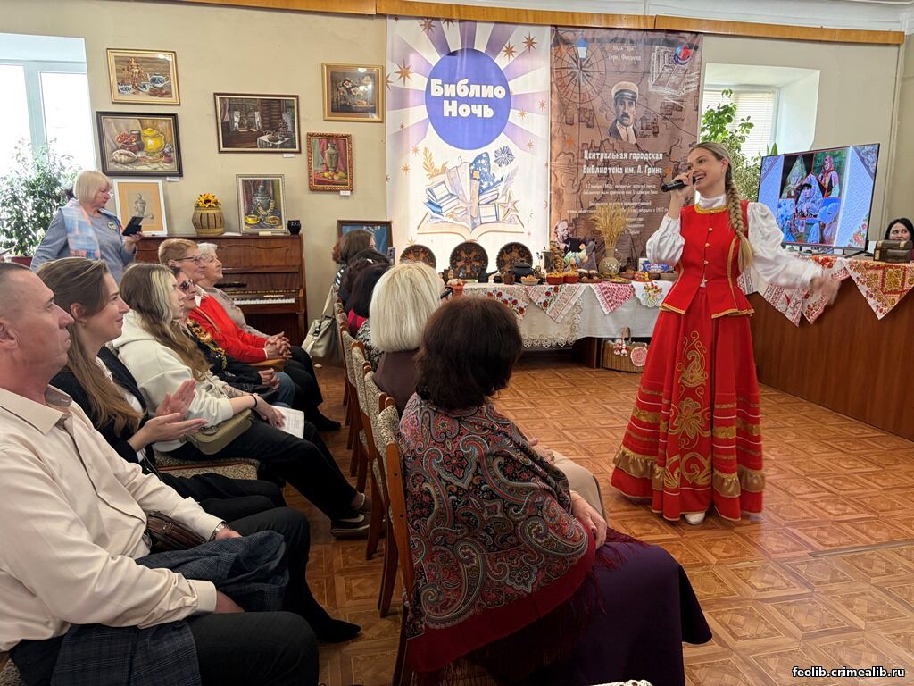Всероссийская акция «Библионочь – 2026»: "Мозаика народов России: культура и традиции"Центральная городская библиотека им. А. Грина в 11-й раз стала участницей Всероссийской акции «Библиночь-2026». Организаторами акции являются Министерство культуры Российской Федерации, Российская государственная библиотека и портал культурного наследия и традиций России «Культура.РФ». В объявленный Президентом Российской Федерации Год единства народов России тема "Библионочи-2026"- «Единство народов — сила России!». Библиотекари подготовили праздничную программу "Мозаика народов России: культура и традиции", посвященную многообразию культур, традиций, которые на протяжении веков формировали историю страны. Открыли мероприятие ведущие Кристина Ильина и Екатерина Ковальчук, отметив, что во все времена сила нашей страны заключалась в единстве наших народов. Сплоченность, поддержка друг друга, уважение к общим корням — главная ценность, объединяющая жителей самой красивой и бескрайней страны. Разнообразие культур, традиций, языков и общая многовековая история, сплетаясь, делают нас уникальными. На мероприятии присутствовали члены Региональной общественной организации социальной поддержки военных пенсионеров и членов их семей «Союз советских офицеров и ветеранов боевых действий Феодосии и Восточного Крыма», студенты Юго-Восточной академии (филиал) ФГАОУ ВО «Крымский федеральный университет им. В.И. Вернадского», члены Творческого союза «Вдохновение», читатели библиотеки. Гости мероприятия совершили литературно-историческое путешествие «Традиции и обычаи народов Крыма», узнали о народах Крыма, их традициях и обрядах, фольклоре, которые обладают глубокой художественной образностью и символикой. Примером яркости и неповторимости стал инсценированный «Славянский обряд сватовства». Не смотря на разнообразие обычаев, свадьба у разных народов объединяла семьи, служила продолжением рода и передавала через поколения сложную систему поверий, обрядов и оберегов. Изюминкой мероприятия стал свадебный рушник и каравай, который вручили «молодоженам» как символ любви, благополучия, достатка. Ведущие праздника продолжили вечер часом искусства "Шали и платки: нити истории в русском наряде», рассказав о платке как неотъемлемой части русского традиционного костюма, познакомив с видами платков и шалей, способами их изготовления; различными способами их ношения, значениями орнаментов и цветов. Участников "Библионочи" заинтересовал исторический экскурс «Национальная кухня народов Крыма». Иллюстрированная презентация с фотографиями разнообразных блюд славян, татар, караимов, армян, греков и других народов пробудила аппетит у читателей, вызывая желание попробовать пироги, куличи, бублики, блины, пряники, представленные на экспозиции в зале. Интересным дополнением праздника стала этнографическая выставка «Калейдоскоп культур: предметы быта народов России». На выставке продемонстрированы старинные предметы быта, мебели, одежды и другие вещи, которые использовались в прошлом и отражают культурные, хозяйственные особенности эпохи. Они часто изготавливались вручную, имели практическое назначение и часто украшались резьбой, росписью или другими декоративными элементами. Зал главной библиотеки специально к празднику был украшен живописны