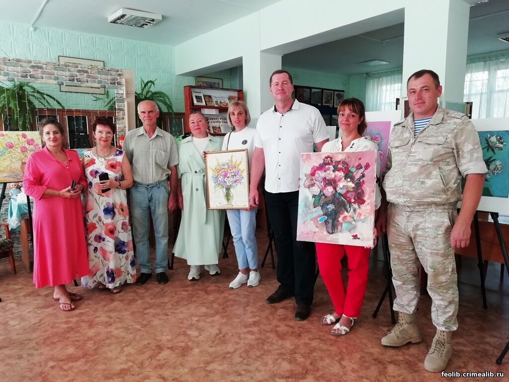 Встреча организаторов проекта «О России с любовью» с семьями участников специальной военной операцииВ Городской библиотеке им. С. Пивоварова прошла встреча организаторов проекта «О России с любовью» с семьями участников специальной военной операции. Мероприятие организовали при поддержке руководителя Крымского регионального благотворительного фонда «Новый Крым» Артема Мельниченко и руководителя библиотеки Раисы Лесниковой. Руководитель проекта, заслуженный работник культуры Республики Крым и профессиональный художник Вера Чеканова поприветствовала участников и передала семьям участников СВО десять картин от профессиональных художников. Проект «О России с любовью» реализуется при поддержке Президентского фонда культурных инициатив. Его возглавляют Вера Чеканова и художники из более чем 60 регионов России. По завершении проекта выйдет художественный альбом «О России с любовью» и документальный фильм «Вера в искусство». Презентация книги запланирована на октябрь 2025 года. Библиотеке также подарили прекрасно изданный альбом «С Россией вместе. Искусство Крыма, ЛНР, ДНР». Раиса Лесникова, руководитель библиотеки | |