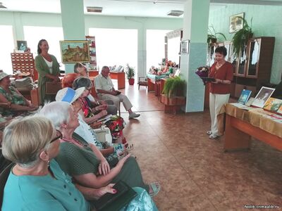 Встреча с Анной Семёновной Пивоваровой в Городской библиотеке им. С. ПивовароваВ день рождения поэта Семёна Пивоварова в Городской библиотеке, носящей его имя, состоялась встреча с Анной Семёновной Пивоваровой, дочерью поэта и автором книги «Папина книга». Книга вышла в 2023 году в издательстве «Коктебель» к столетию со дня рождения Семена Михайловича. В сборник вошли его стихи, воспоминания родных и близких, трогательные строки, написанные дочерью и внуком, а также рассказы феодосийцев, литераторов и друзей. Книга проникнута любовью и благодарностью к мудрому, искреннему человеку с неиссякаемым жизнелюбием и талантом. На встрече прозвучали воспоминания Анны Семёновны, читателей и сотрудников библиотеки, а также стихи для детей, исполненные учащимися школы № 17. Музыкальную программу великолепно представил бард Валерий Храпай. Раиса Лесникова, руководитель библиотеки | |