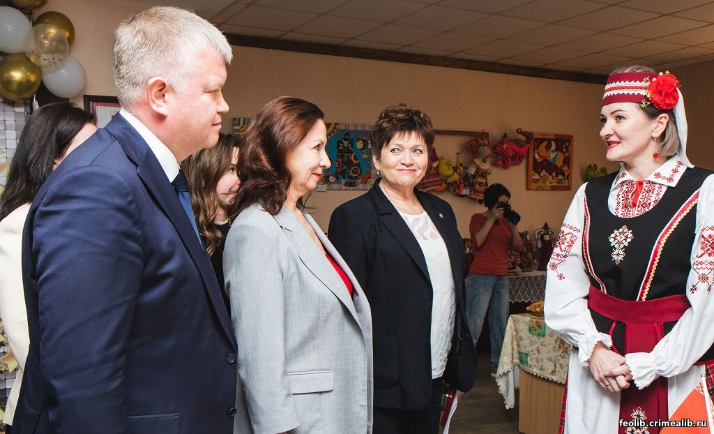 Выездная выставка народного искусства "Богатство и разнообразие славянских культур"Приморская поселковая библиотека представила выездную выставку народного искусства "Богатство и разнообразие славянских культур" в Доме культуры пгт Щебетовка. В рамках программы V Всекрымского смотра-конкурса любительского искусства «Ступени мастерства», посвященного Году единства народов России «Город 25 веков и 100 народов», 27 марта в холле Щебетовского Дома культуры состоялась выставка творческих работ мастеров Большой Феодосии, ее подготовили представители разных национальностей, дружной семьей проживающие в Крыму, в нашем округе. Руководитель Приморской библиотеки Анна Крымчак представила посетителям выставку народного искусства "Богатство и разнообразие славянских культур", которая работала в рамках культурно-образовательного проекта "Славянский дворик". Экспозиция включала сувениры ручной работы, литературу славянских народов, картины народных мастеров, национальные костюмы. Анна Александровна приветствовала гостей на белорусском языке, рассказала о деятельности библиотеки в рамках проекта «Славянский дворик». Всех участников приветствовали министр культуры Республики Крым Татьяна Анатольевна Манежина, заместитель Председателя Государственного Совета Республики Крым по культуре, охране культурного наследия и спорту Алла Аликовна Пономаренко, глава муниципального образования городской округ Феодосия Республики Крым Иван Васильевич Козырев, заместитель главы администрации города Феодосии Юлия Сергеевна Филатова. Гостей угощали национальными блюдами, рассказывали о традициях народов, знакомили с творческими работами и технологиями их создания. Анна Крымчак, руководитель библиотеки | |
