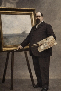 Алексей Вильгельмович Ганзен, которого в России все называют Алексеем Васильевичем, - один из трех, ставших художниками, внуков И. К. Айвазовского, сын его второй дочери Марии Ивановны Айвазовской. Художник-маринист, профессор, коллекционер, Почетный член Одесского городского, Шлиссельбургского уездного и Петроградского городского Попечительств детских приютов, Надворный Советник со старшинством, художник Морского Министерства России. Следуя по стопам своего знаменитого деда, художник посвятил свое искусство, в основном, морю и флоту. |
