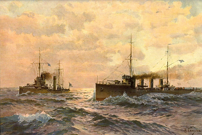 Эскадренные миноносцы «Финн» и «Новик» Для отечественного флота имя «Новик» почти на полвека стало нарицательным. Эскадренные миноносцы, или, как их называли в русском флоте, минные крейсеры этой серии на момент своего создания были самыми быстрыми среди своих одноклассников во всем мире. Они стали первыми по-настоящему универсальными кораблями, способными охранять свои корабли от чужих, идти в атаку на врага, уничтожая его снарядами и торпедами, и ставить минные заграждения. Собственно, с «Новика» и его собратьев и начался век настоящих эсминцев. В январе 1920 г. А.В Ганзен с женой вынужденно покинули Россию. Их приняло Королевство Югославия. В эмиграции А. В Ганзен много и плодотворно работал. В ноябре 1920 г. прошла его первая персональная выставка. Известность и успех позволили художнику приобрести виллу в Дубровнике, названную в честь жены «Олимпией». Его пейзажи и марины, история флота и любимый вид с террасы виллы «Олимпия»: «Остров Дакса», «Флот у Терстено», «Вид на порт Груж», «Церковь Св.Року в Млини» и т. д. И каждая работа – шедевр вдохновения, который нельзя забыть. В годы эмиграции в содружестве с контр-адмиралом А. Д. Бубновым продолжил изучать флот и тщательно передавать облик кораблей. С его иллюстрациями издан трехтомный труд контр-адмирала "История военно-морского искусства" (Загреб, 1933, на сербо-хорватском языке). В 1920-х годах художник выставлялся в Праге, Риме, Бухаресте, Рио-де-Жанейро и дважды в Буэнос-Айресе. В 1925 г. Ганзен совершил путешествие в Южную Америку. Его персональные выставки прошли в Риме (1928) и Париже (1929). Последняя прижизненная выставка картин (1936) в Белграде была посвящена флоту Далмации. Его работы приобретались для коллекций королей Румынии и Югославии, королевы Италии.